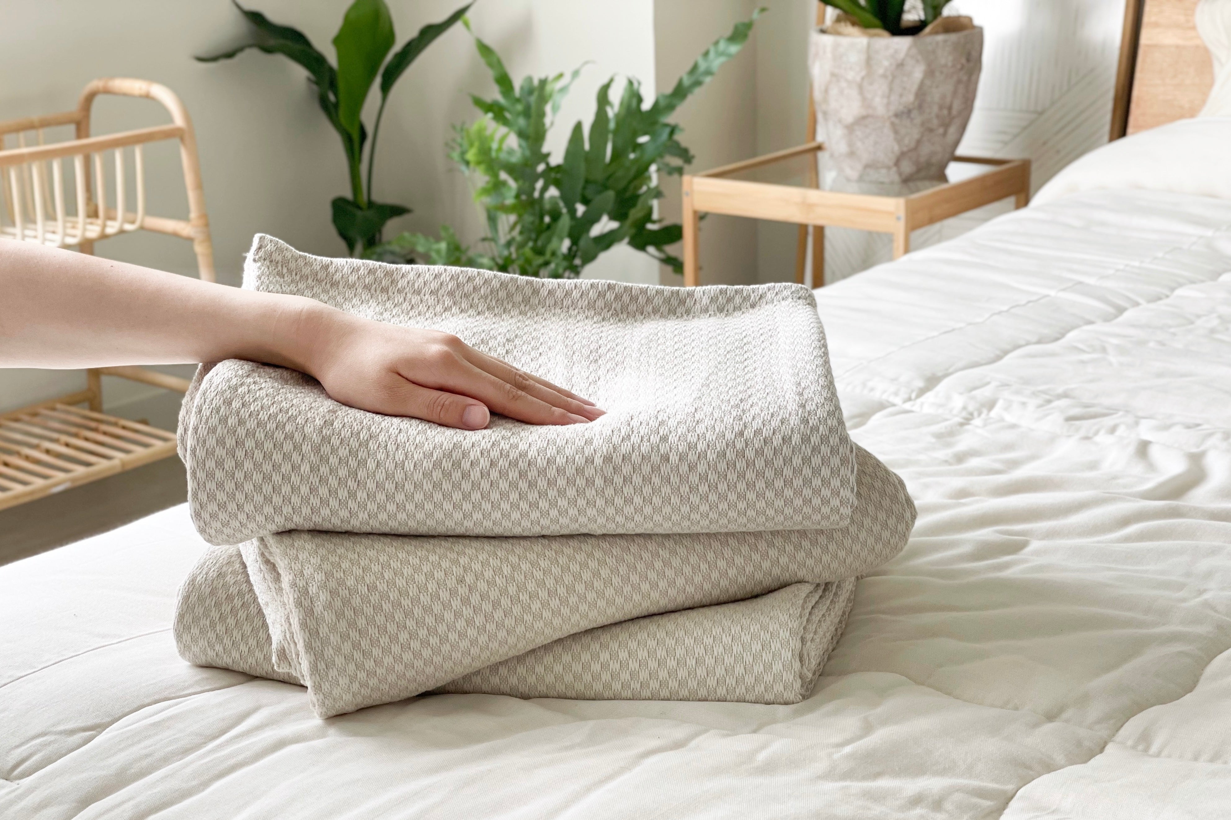 ふわっ、とろっ。肌さわり抜群のオーガニックコットンケットが完成しました♪