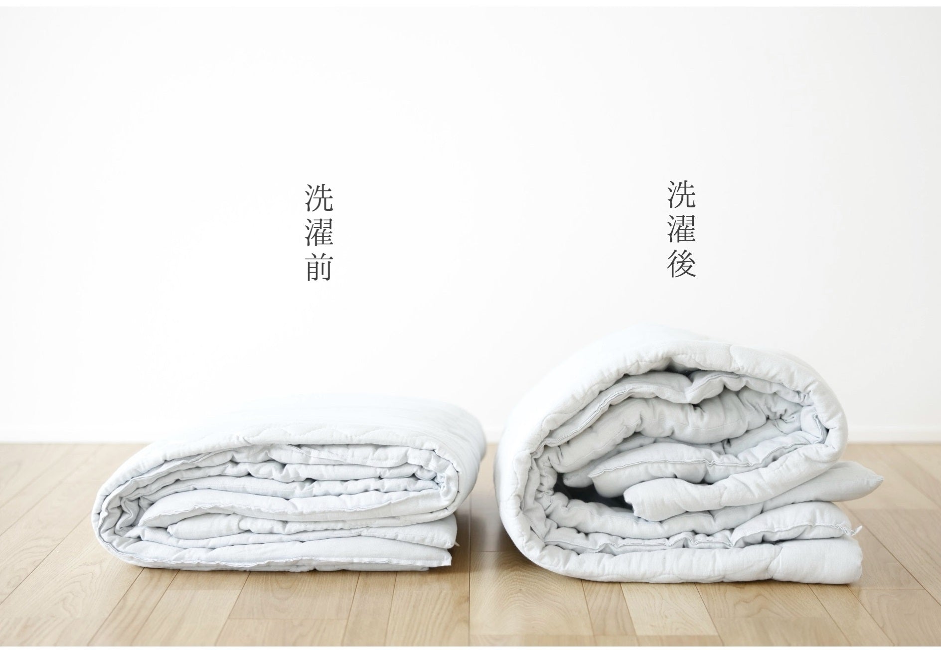 洗濯をしてから使用しました。本当にふわっとしていて、それでいて程よく重みがあるので包まれている感覚がします。とても気持ちよく買って良かったと思える肌掛けふとんでした。