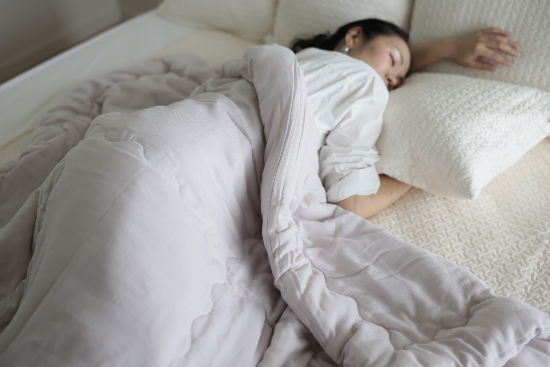 大人で一晩にコップ約1杯程の寝汗をかくと言われています。寝汗は、良い睡眠を得るために必要な自然の生理現象なのです。ポリエステルなどの生地の寝具は、睡眠中にかいた汗を吸湿せず、表面に付着します。