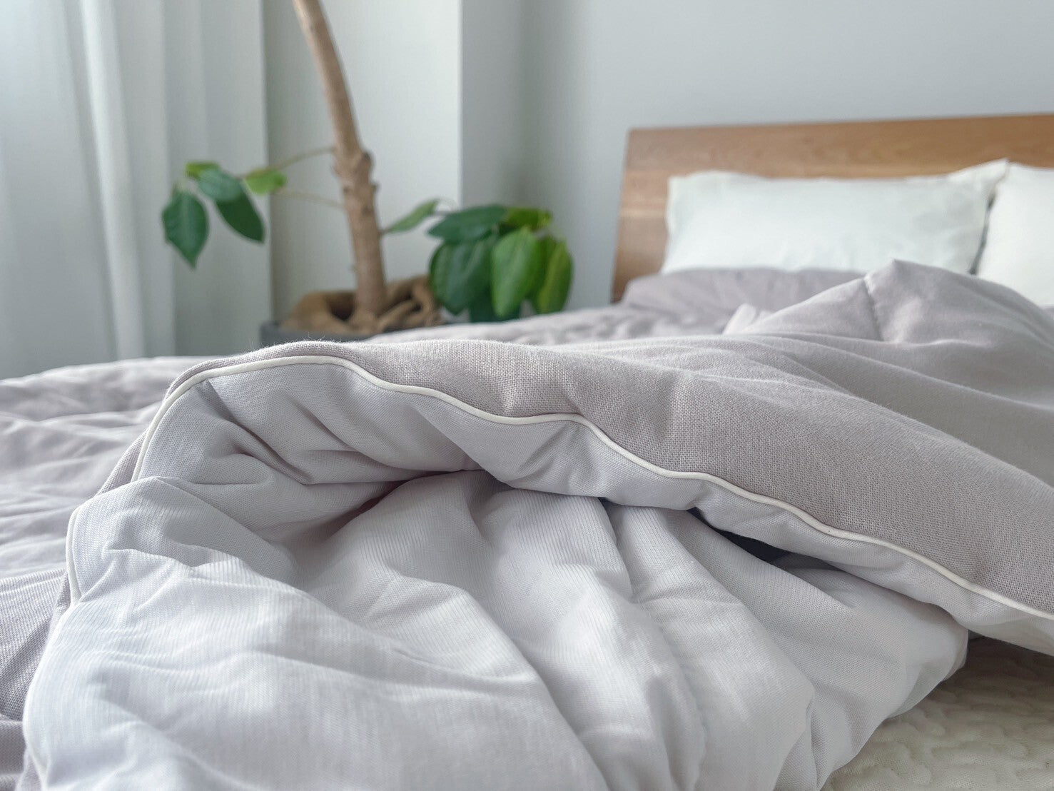 ひとつの製品で両面を使えるデザインや仕様のことを指す「リバーシブル」。hinyari アイスコットンは、表と裏の両方が異なる“色”と“素材”になってなっています。用途や気分、季節によって使い分けオールシーズンお使いいただけるとっても優秀なお布団です♪